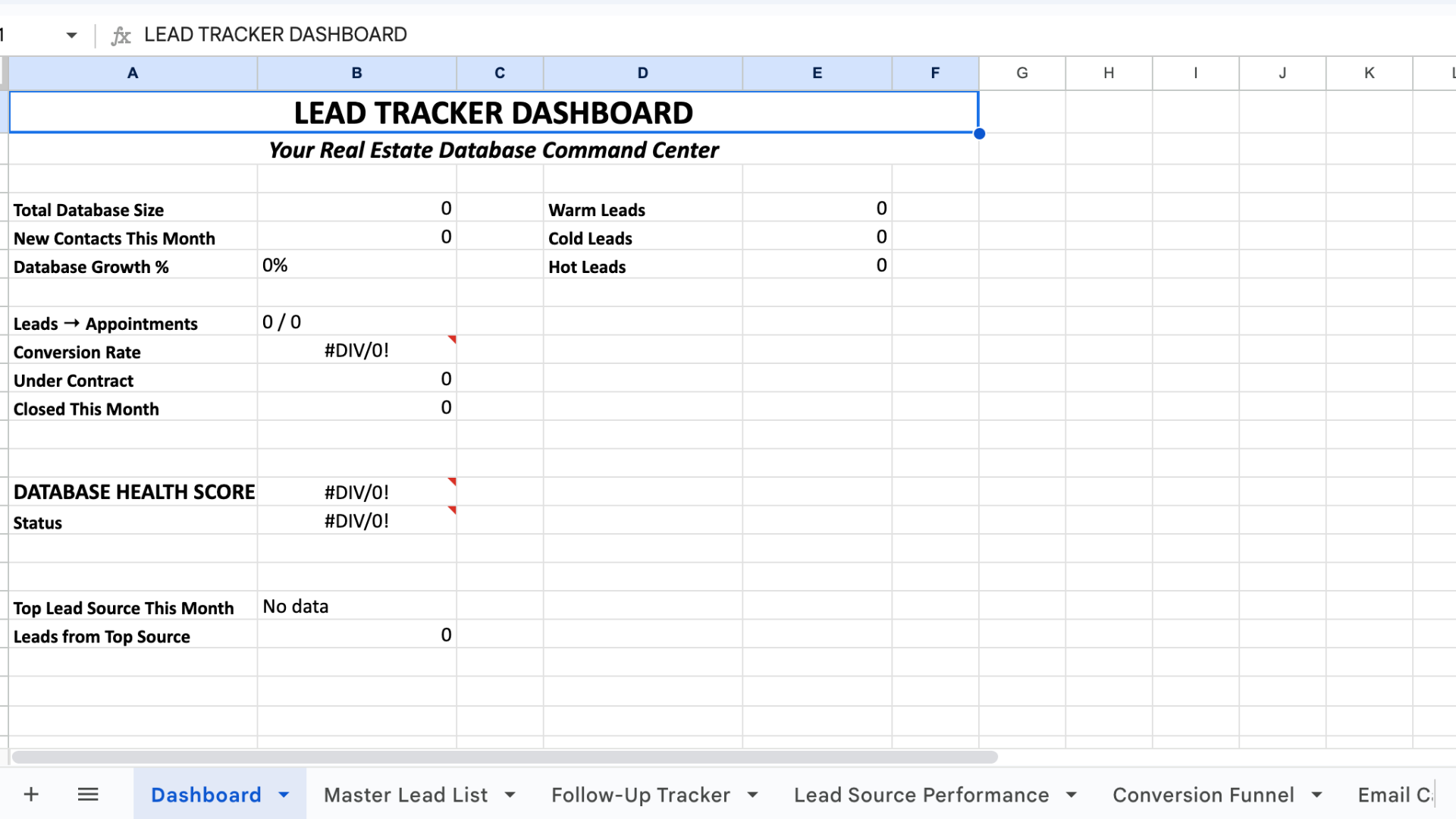 Track Every Contact and Never Miss a Follow Up.Ā The complete real estate database tracker that works in Google Sheets.
